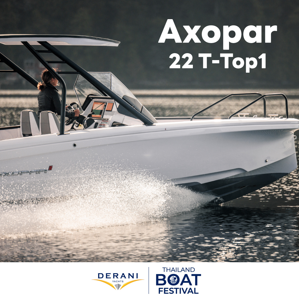 - Axopar 22 T Top – The Axopar 22 T-Top is a stylish and versatile addition to the Axopar 22 range, featuring a T-Top roof for all-weather protection and a sleek, modern design. It delivers best-in-class handling and seaworthiness, making it a standout performer on the water. The T-Top’s clever proportions provide shade and ample headroom for those at the helm and passengers behind. With a competitive starting price and recognition as a European Powerboat of the Year 2022, the Axopar 22 T-Top combines performance, style, and value in a compact 22-foot package. Axopar Boats are available in 22, 25, 29, 37 and 45 foot models and a variety of configurations which are ideally suited to the boating environment in Asia. More info: https://www.derani-yachts.com/yachts/axopar-22-t-top/